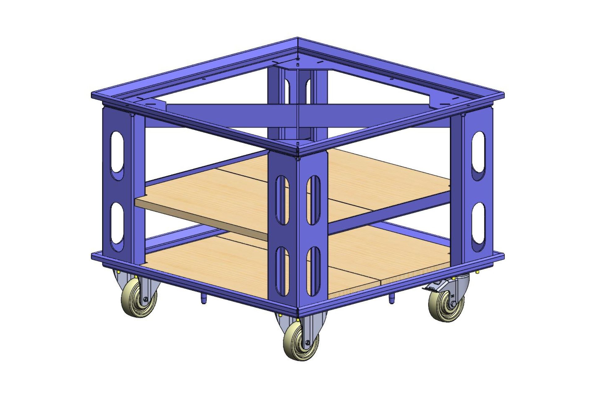 Ein Bodenroller ist eine mobile Plattform, die zum Transportieren von Paletten oder schweren Lasten innerhalb eines Lagers oder Produktionsbereichs verwendet wird.